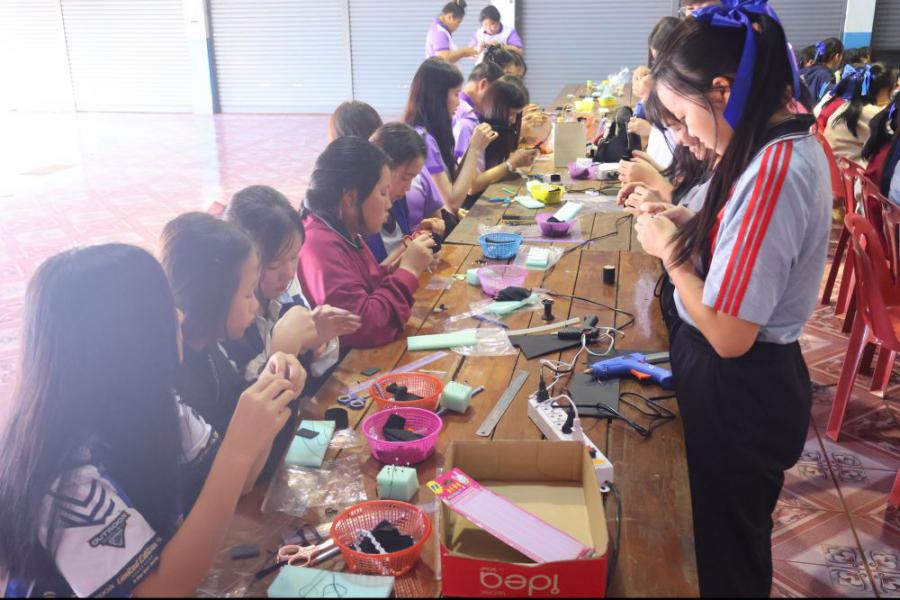 วันที่ 3 สิงหาคม 2568 โรงเรียนรวมไทยพัฒนา 2 ได้จัดกิจกรรมอบรมเชิงปฏิบัติการ ภายใต้โครงการพัฒนาคุณภาพการศึกษาและพัฒนาท้องถิ่น โดยมีสถาบันอุดมศึกษาเป็นพี่เลี้ยง ซึ่งได้รับความร่วมมือจาก อาจารย์กรรณิการ์ บุญยัง จากวิทยาลัยชุมชนตาก ทำหน้าที่เป็นพี่เลี้ยงให้ความรู้และสนับสนุนการจัดกิจกรรมในครั้งนี้ สำหรับการอบรมในวันนี้ เป็นกิจกรรมการฝึกทักษะการทำ ?หมวกม้ง? โดยได้รับเกียรติจาก คุณวิราวรรณ กวินไพนสนธ์ วิทยากรผู้มีความรู้และเชี่ยวชาญด้านหัตถกรรมพื้นบ้านของชาวม้ง ถ่ายทอดองค์ความรู้และเทคนิคการประดิษฐ์หมวกม้งให้กับนักเรียนอย่างใกล้ชิด ซึ่งนับเป็นการบูรณาการการเรียนรู้ด้านศิลปวัฒนธรรมท้องถิ่นร่วมกับทักษะอาชีพอย่างมีประสิทธิภาพ ทั้งนี้ ได้รับเกียรติจาก นายสุกิจ สว่างเดือนฉาย รองผู้อำนวยการโรงเรียนรวมไทยพัฒนา 2 เป็นประธานในพิธีเปิดกิจกรรม พร้อมกล่าวต้อนรับวิทยากรและผู้เข้าร่วมอบรม ตอกย้ำความมุ่งมั่นของโรงเรียนในการส่งเสริมการเรียนรู้ที่เชื่อมโยงกับวัฒนธรรมท้องถิ่น อันนำไปสู่การพัฒนาทักษะชีวิตและการประกอบอาชีพอย่างยั่งยืนในอนาคต S:0